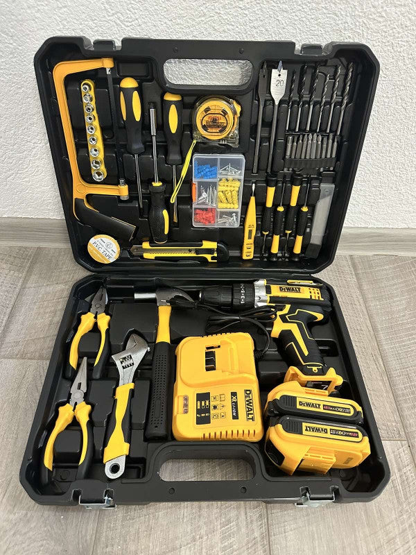 Kombinacija moćne bušilice i kompletnog seta ručnih alata