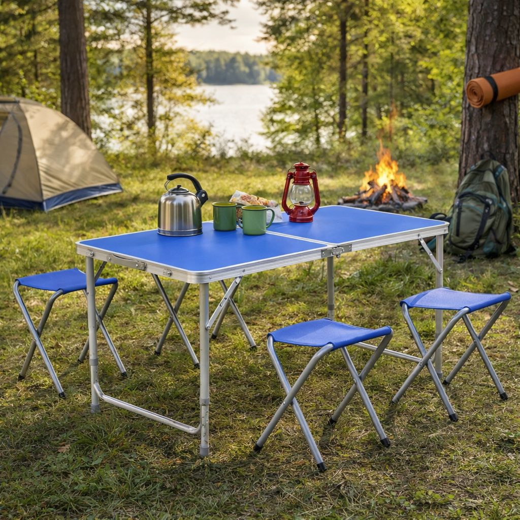 Kamp sto u koferu + 4 stolice je praktičan sklopivi set namijenjen svima koji vole boravak u prirodi, izlete i druženje na otvorenom. Zahvaljujući pametnom dizajnu, cijeli komplet se sklapa u oblik kofera, što olakšava nošenje, odlaganje i transport.